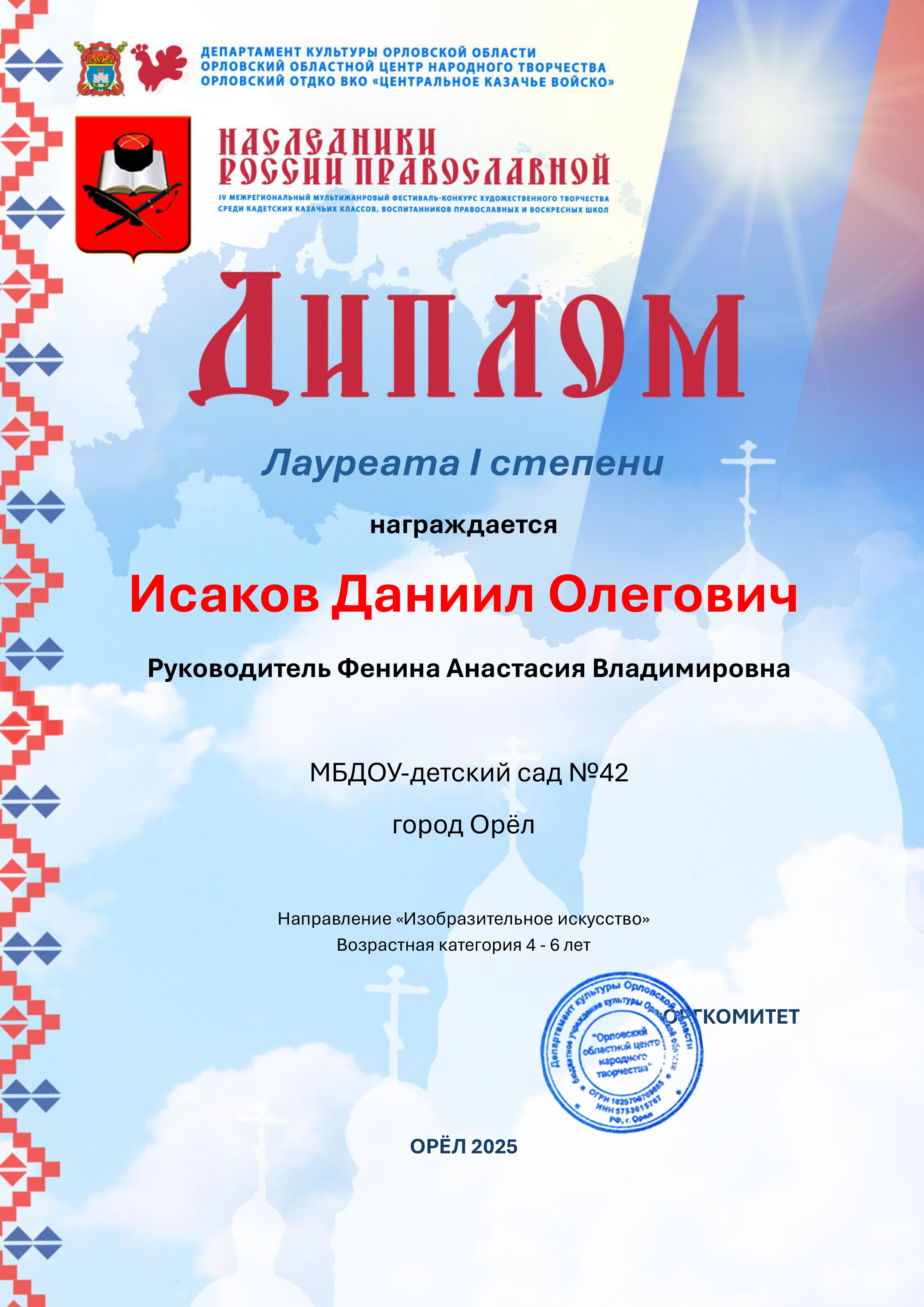 Поздравляем воспитанника группы "Ромашки " Исакова Даниила с заслуженной победой!!!!