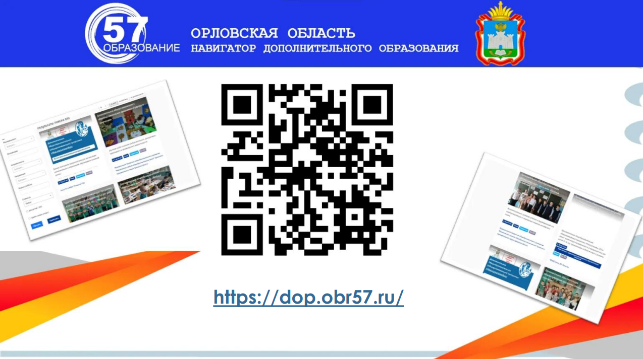 Запись на кружки и мероприятия осуществляется по ссылке https://dop.obr57.ru/